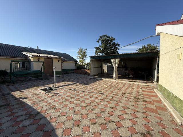 Двір облаштований: є просторий гараж із оглядовою ямою, навіс на кілька авто, літня кухня, господарські приміщення, погріб, вольєр, дровник і курник. Окремо розташований гостьовий будинок на 50 м². Установлена система відеоспостереження. Територія обгороджена, вимощена плиткою, вікна з гратами.